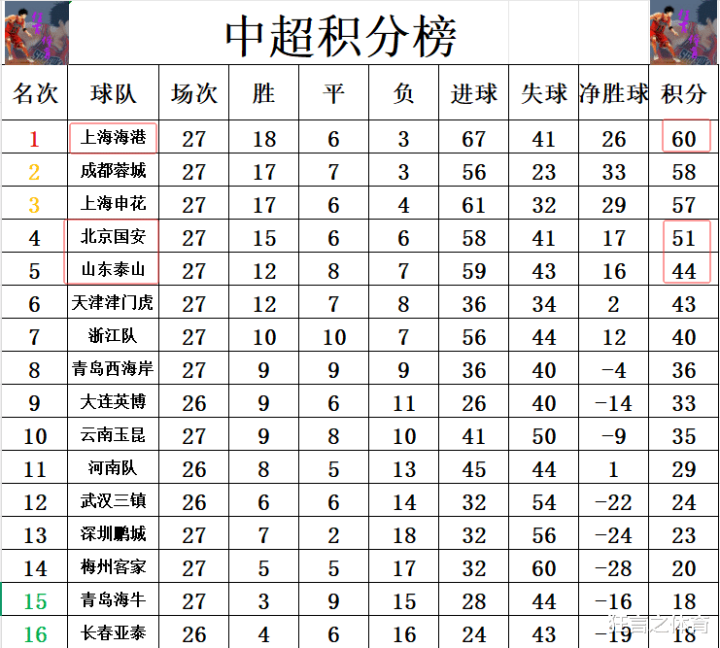 中超最新积分战报 5轮4败! 国安落后上港9分告别争冠 山东平浙江仍第5