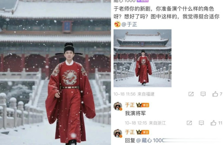 有趣的是,《金吾不禁》还没开拍,于正在微博与网友对话里,直接承认赵晴不扛剧,还说整部戏最扛剧是他自己。为此,他还将下海去演女二的爸爸,果然引发话题,上了热搜。据悉,于正的角色是个将军,而他最近确实一直在健身、只吃减肥餐,似乎在为角色做准备。网友对于于正为自己制作的新剧搞噱头,褒贬不一,毕竟两位主角赵晴、周柯宇都非流量明星,他适时制造话题,也算用心良苦。